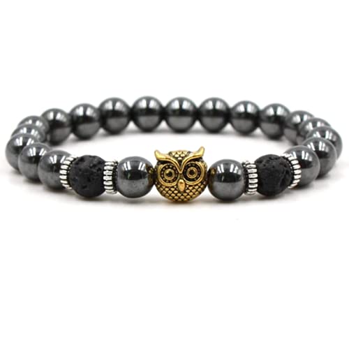 Other - أسوره حجر هيماتيت رمادي غامق بوجه بومه دهبي، للجنسين