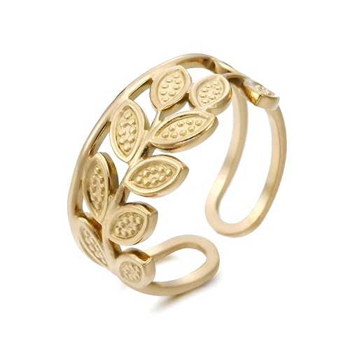 Generic - Golden ring-a luxurious stainless steel ring decorated with gold-colored leaf drawings, embodying the elegance of nature and a distinct craftsmanship for daily use.