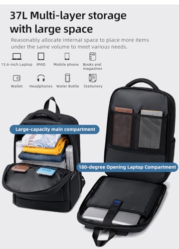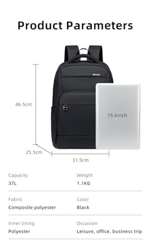 GOLDEN WOLF - Golden Wolf Backpack 37L – Water-Resistant Travel & Work Laptop Bag, Fits 15.6” Laptop, Multi-Compartment, Ergonomic Design for Men & Women - GB00708