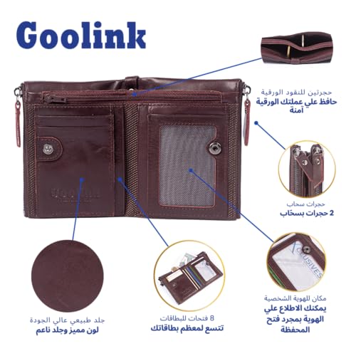 Goolink - GOLINK Men's Wallet – GL32402 | Genuine Leather | Premium Burgundy Color, RFID Support, Double Zipper