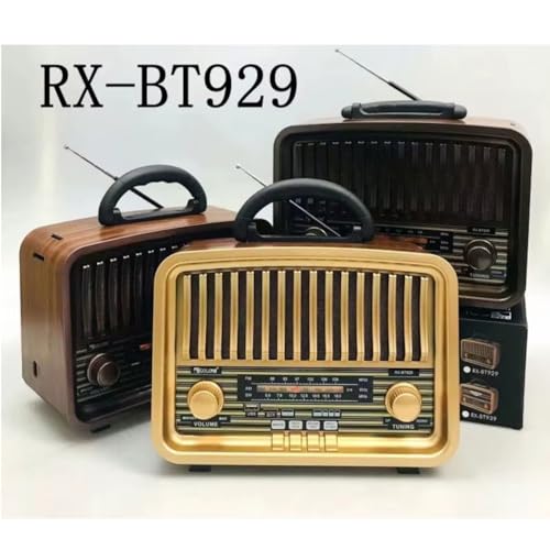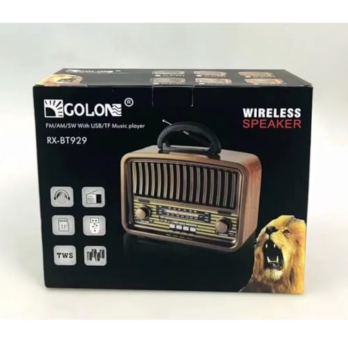 GOLON - Golon Stylish Wooden Radio, 3 Bands (AM-FM-SW), Supports Bluetooth, USB, and TF Card, with TWS Technology, AC Charging Input, and Rechargeable Battery | RX-BT929 (BROWN)