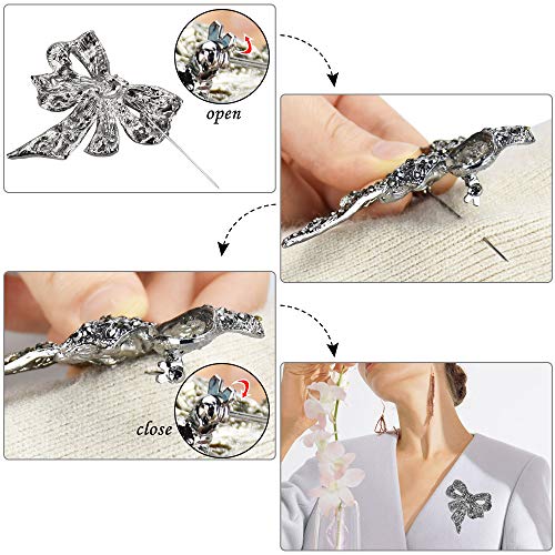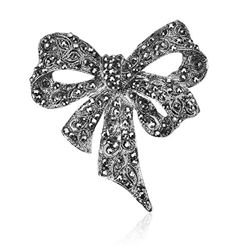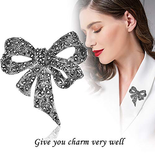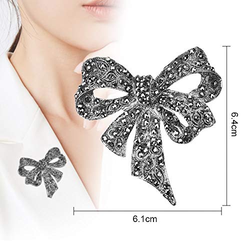 GOLRISEN - دبوس بروش كلاسيكي بتصميم شريط من جولريسين، مجوهرات بلينج جوليري، بروش ايشارب اسود على شكل فراشة وفيونكة مرصع بكريستالات جميلة للنساء (اسود), معدن