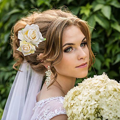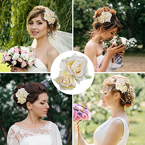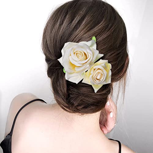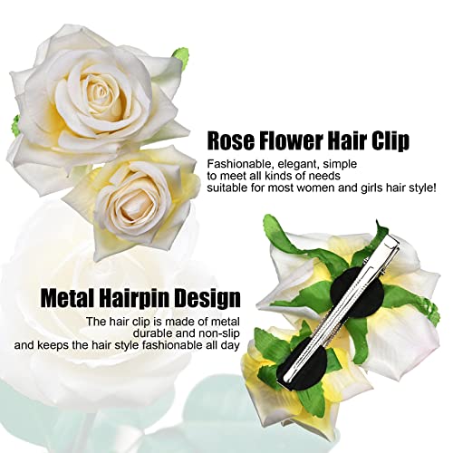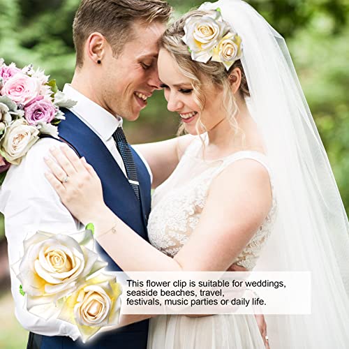 golshine - Rose Flower Clips,Flower Hair Pins Flower Pin up Flower Brooch, Hair Barrette Accessories for Women Girls Bridal (Beige)