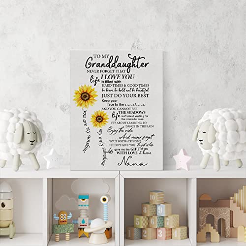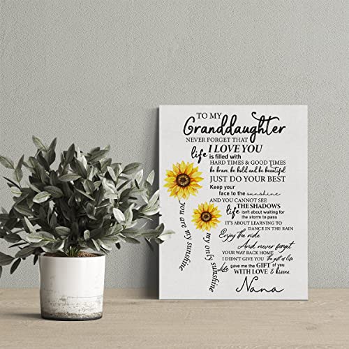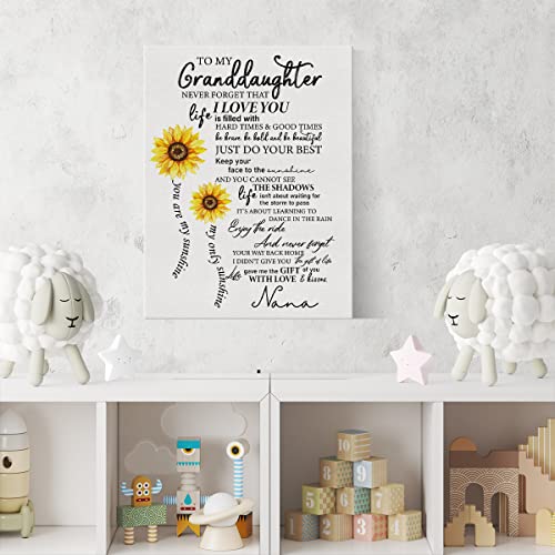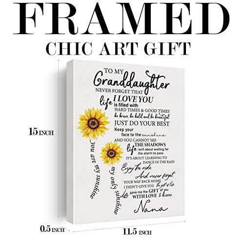 GOLSOO - GOLSOO to My Granddaughter Canvas Wall Art Decor Meaningful Gift for Granddaughter from Nana Poster Painting Framed Sunflowers Print for Home Bedroom Decor 12 X 15 inch