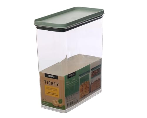 Gondol - علبة تخزين طعام مستطيلة الشكل، سعة 3.30 ل، محكمة الغلق، قابلة للتكديس من جوندول تايتي، شفافة مع غطاء اخضر فاتح