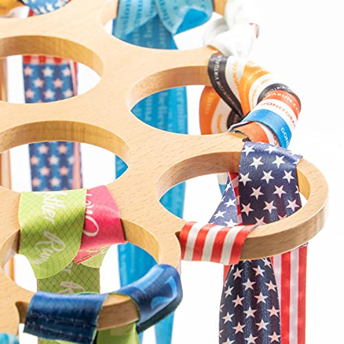 - The original wood premier tabletop running race medal display! Beautifully display your collection of medals from marathons, half-marathons, 5Ks, triathlons, road races, and other athletic events. Available in a hand-crafted solid wood, this new stylish display is sure to be a hit with runners everywhere. Perfect for use in the home, office or as a gift to the runner or athlete in your life!