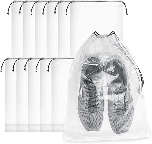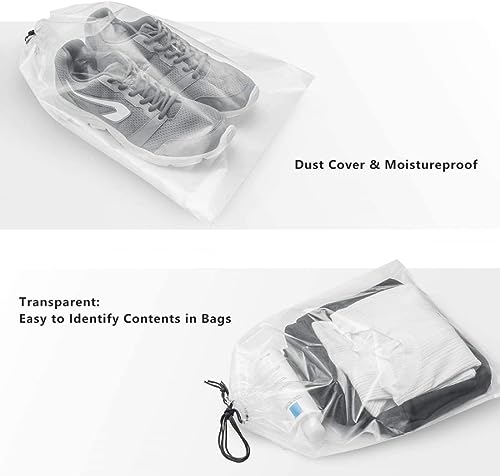 Goodern - Goodern 12 Pcs Transparent Storage Bags Set,Drawstring Shoes Bag Plastic Portable Shoe Bags Organizers,Clear Large Shoes Bag for Travel Packing Shoe Organizers,Household Storage Bag,Clothes,Toiletries