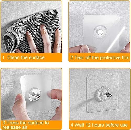 - سهل الاستخدام والإزالة: ما عليك سوى تنظيف الحائط جيدًا، ثم علق الخطافات واضغط على قاعدة الالتصاق بالكامل وثبت من المنتصف إلى الحافة لمدة 30 ثانية تقريبًا، ثم انتظر 12 ساعة قبل تعليق الأشياء.
