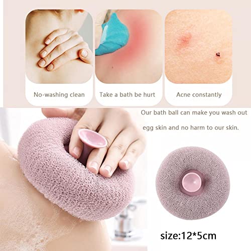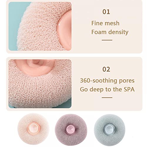 Goodern - غوودرن مجموعة اسفنجات استحمام من 3 قطع، كرات استحمام مقشرة قابلة لاعادة الاستخدام مع مصاصة، سهلة التعليق والغسيل، اسفنجة استحمام للعناية بالبشرة، كرة فرشاة تجميل للجسم للنساء والرجال -A