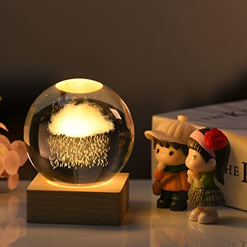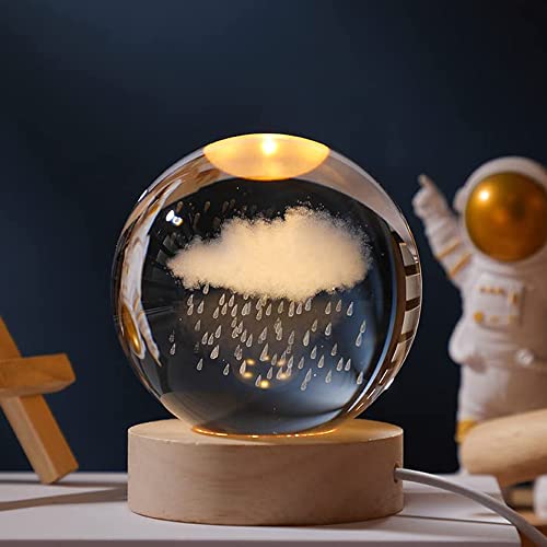 Goodern - مصباح ليلي على شكل كرة كريستال ثلاثية الأبعاد بتصميم مجرة شفافة مع قاعدة خشب كرات زجاجية زينة مفتاح يعمل باللمس ديكولامب لديكور المنزل وسطح المكتب من جودرن - سحابة ممطرة