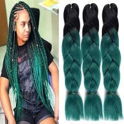 Generic - Goodern Braiding Synthetic Hair Extensions Jumbo Color Braid (Black and Dark Green) Set of 3