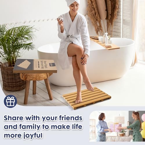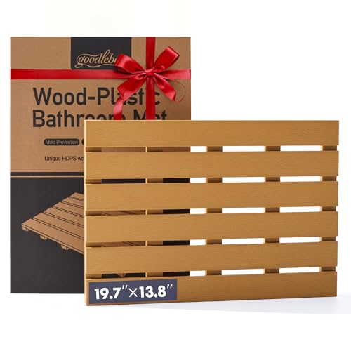 goodleben - سجادة حمام خشبية مركبة من جودلبين، تدعم حتى 400 باوند، سجادة حمام 21 انش × 15 انش (لون الخيزران)