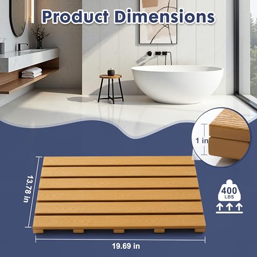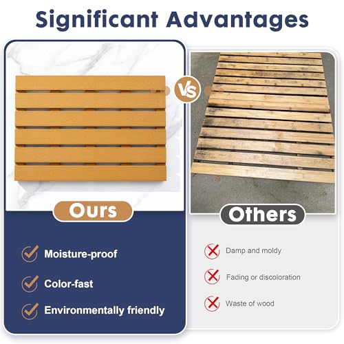 - مركب الخشب والبلاستيك عالي الكثافة: جماليات خشبية أصلية، مقاوم للرطوبة ومقاوم للبهتان، مصمم ليدوم طويلاً. قل وداعًا لسجادات الحمام المصنوعة من الخيزران والخشب المتعفنة والمتغيرة.
