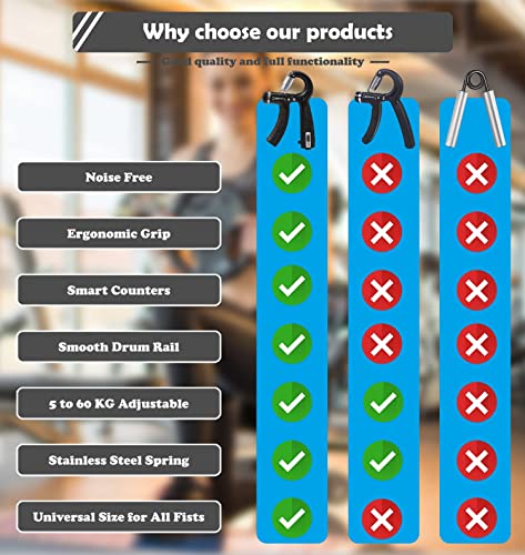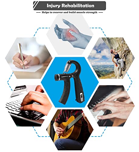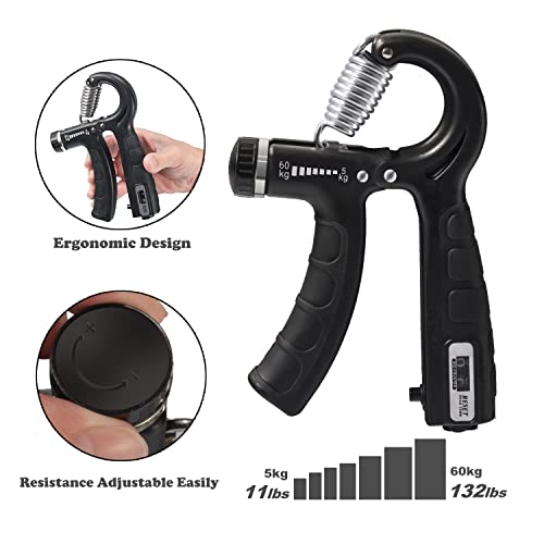 Goodun - 5-60kg Grip Strengthener, Adjustable Hand Grip Trainer with Counter to Build Wrist Forearm and Hand Strength, Grip Strength Trainer for Muscle Building Injury Recovery for Athletes (Black)