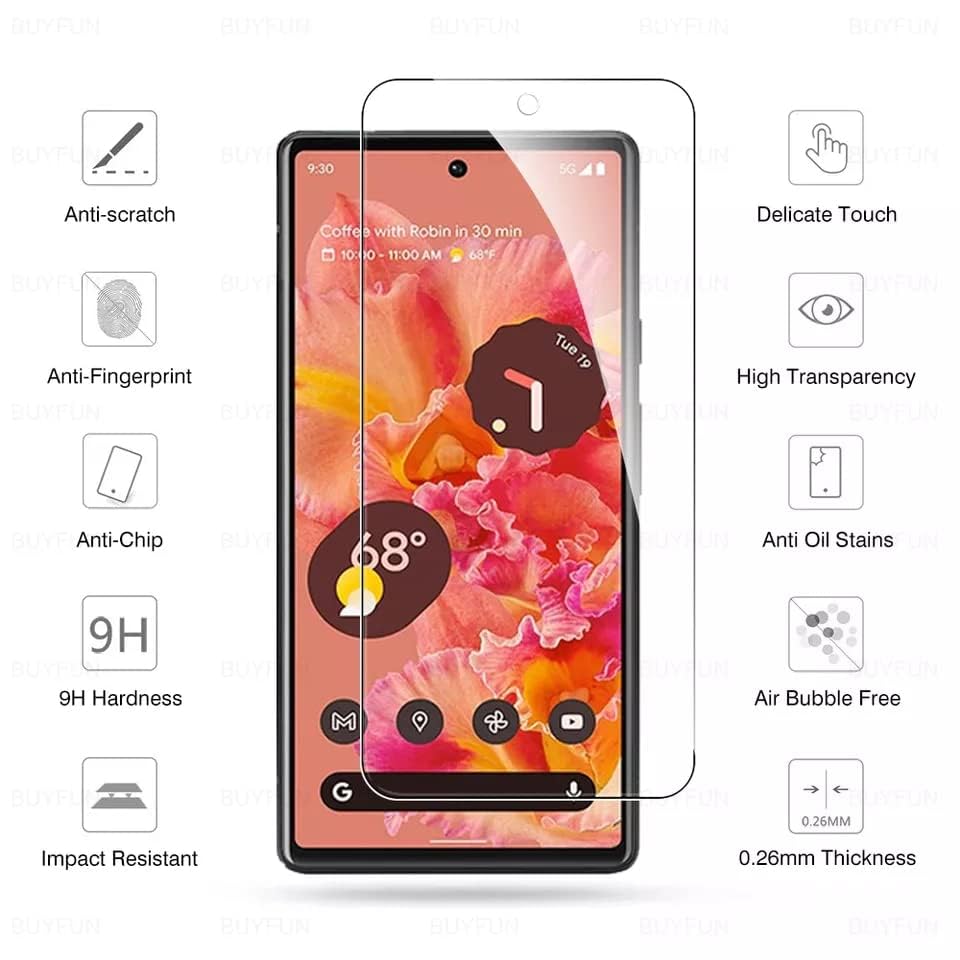 Generic - شاشة حماية من الزجاج المقوى مع فتحة للكاميرا الامامية لموبايل جوجل بيكسل 6، شفاف