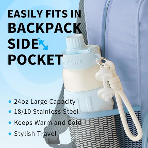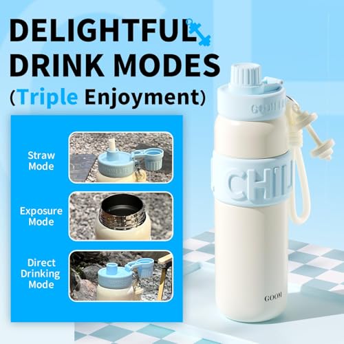 goom - GOOM Chill 24 oz Insulated Water Bottle, 18/10 Stainless Steel Waterbottle with Straw and Straw Cap, Leak Proof Water Bottles for Men, Women, Gifts for Mom, Him, Her—White, Blue