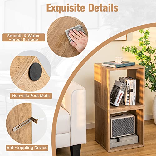GOPLUS - مكعب تخزين خشبي، رفوف تخزين خزانة الكتب، جهاز مضاد للانقلاب، تخزين فينيل لغرفة المعيشة وغرفة النوم والمكتب من جوبلس، عبوة من قطعتين، لون طبيعي، 35 × 38 × 33 سم