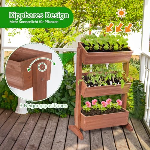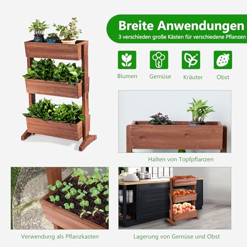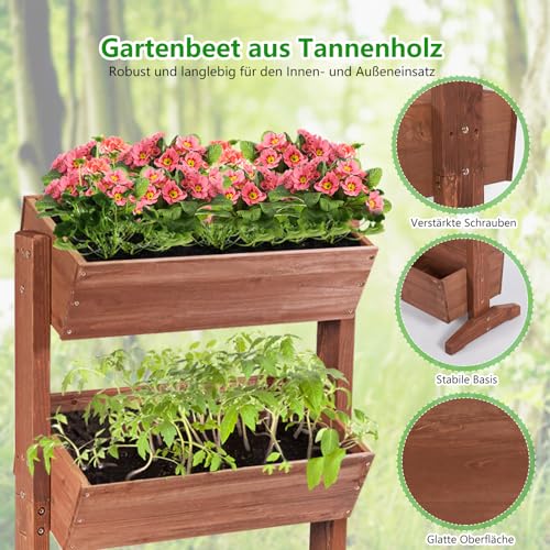 GOPLUS - GOPLUS 3 Tier Raised Bed, Flower Bed Made of Fir Wood, Flower Stairs with 3 Flower Troughs and Drainage Holes, Plant Bed for Garden, Balcony, Patio (71 x 38 x 105 cm)