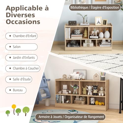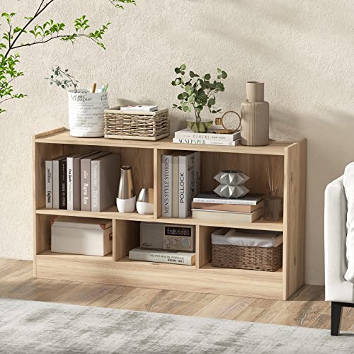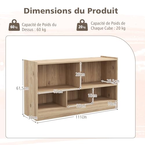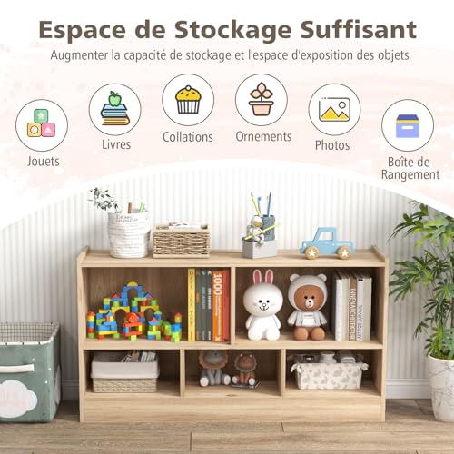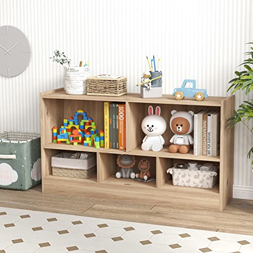 GOPLUS - GOPLUS Children's Storage Shelf with 5 Open Cube Bins, Bookcase Storage Unit for Books and Toys, for Living Room/Children's Room, 111 x 30 x 61.5 cm, Nature