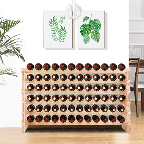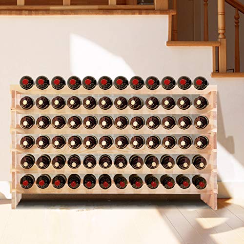 GOPLUS - GOPLUS Wine Rack for 72 Bottles, Solid Pine Wood, 6 Modular Shelves DIY Installation, Natural Style, 119 x 29 x 71.5 cm