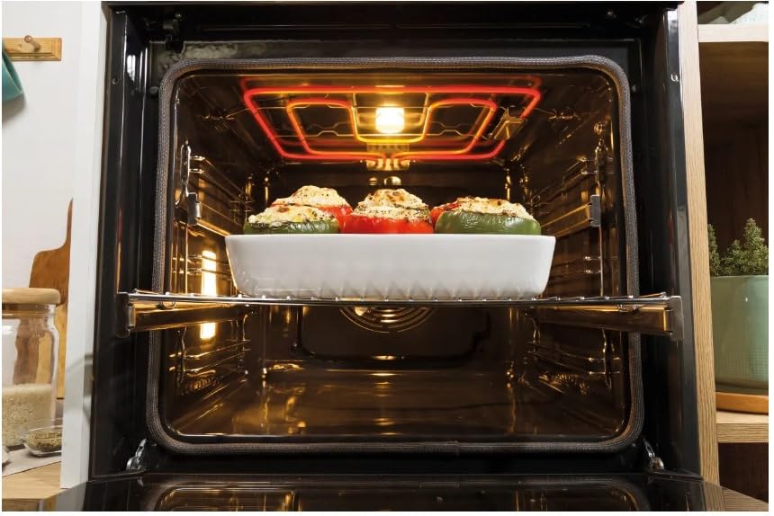 - إضاءة داخلية: أعلى / 1 صينية عميقة / 1 صينية خبز مطلية بالمينا / 1 رف شواء ممتاز / مسبار لحم / مسارات تلسكوبية قابلة للتمديد جزئيًا على مستويين
