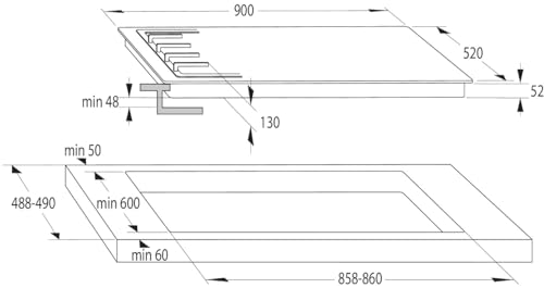 - Power of Middle &Right behind heating element: Ø 7.35 cm, 1.7 kW,