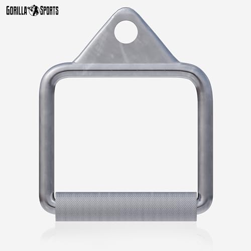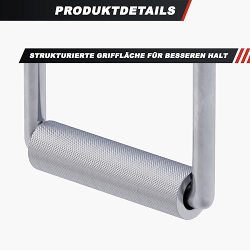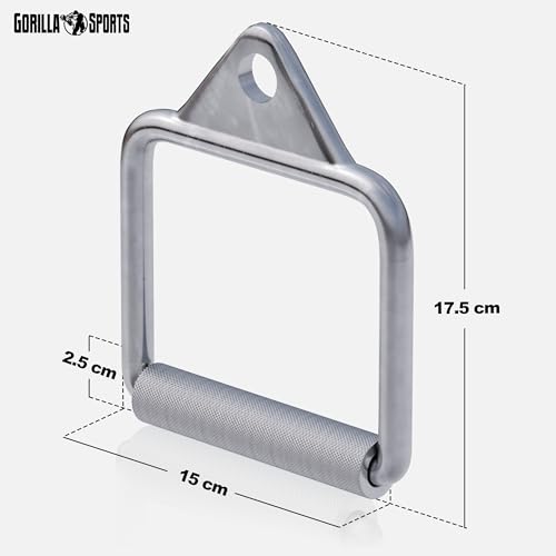 GORILLA SPORTS - GORILLA SPORTS® Stirrup Handle - Single D Handle, Max. Load 200kg / 440lbs, Non-Slip, Knurled Grip, Chrome-Plated - Cable Machine Attachment, Lat Pull Down Bar, Fitness, Multi Gym, Strength Training