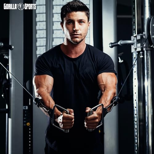 - 💪 GORILLA SPORTS CABLE HANDLE - has a rotatable and knurled grip surface of 13 cm - for non-slip pull and push exercises on the multi-gym