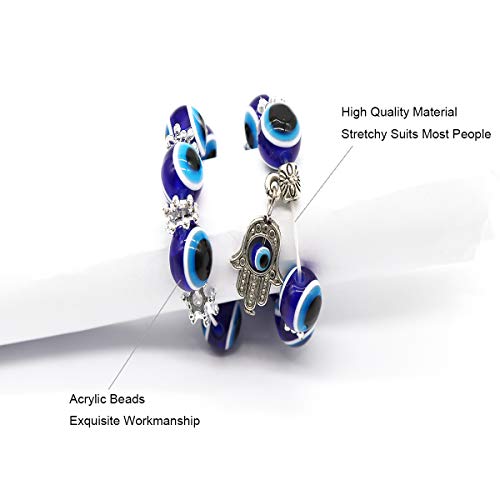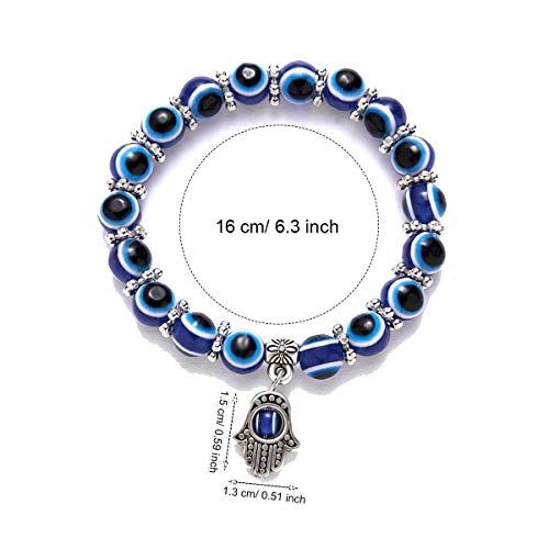 GoShell - 6 Packs Evil Eye Hamsa Blue Beaded Charm Stretch Bracelet Handmade Kabbalah Bracelet Evil Eye Hamsa Fatima Hand Charm Beaded Couples Bracelets Lucky Bracelet for Protection and Blessing