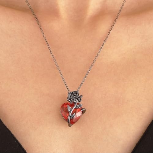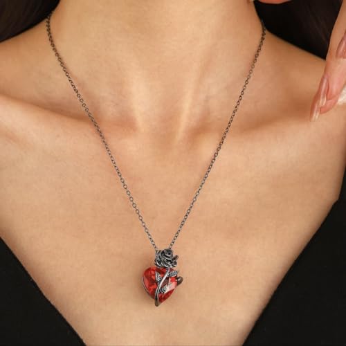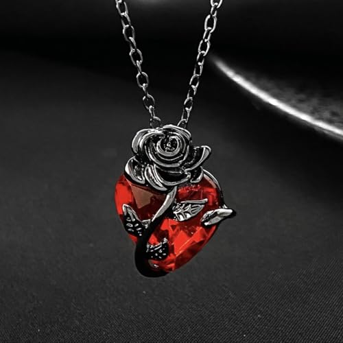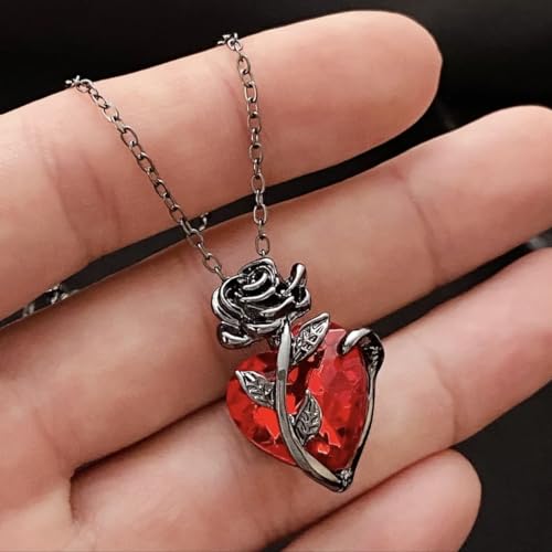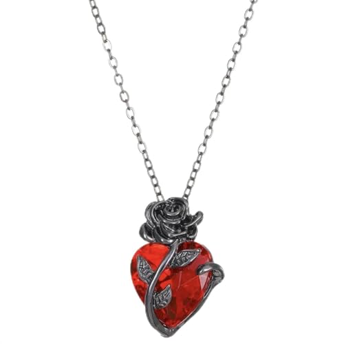 Generic - عقد حب بتصميم قوطي للنساء، مجوهرات جرونج أنيقة، قلب بشري، أحمر ووردي وفضي