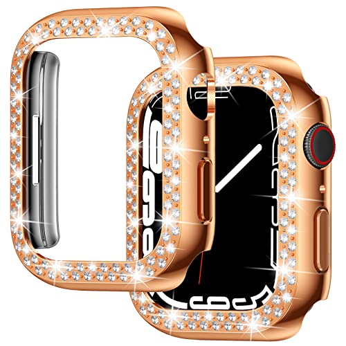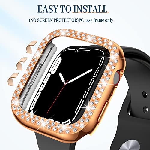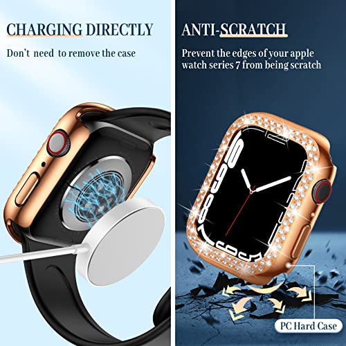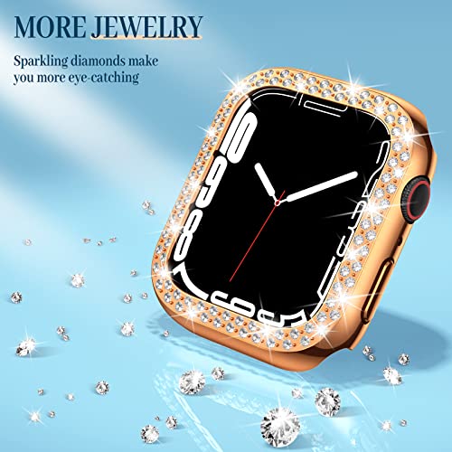 Goton - جراب بشاشة حماية متوافق مع ساعة ابل ووتش سيريس 7 مصنوع من بولي كربونات ومزين بفصوص بتصميم ممتص للصدمات لساعة اي ووتش للنساء من جوتون (ذهبي وردي، 45 ملم)