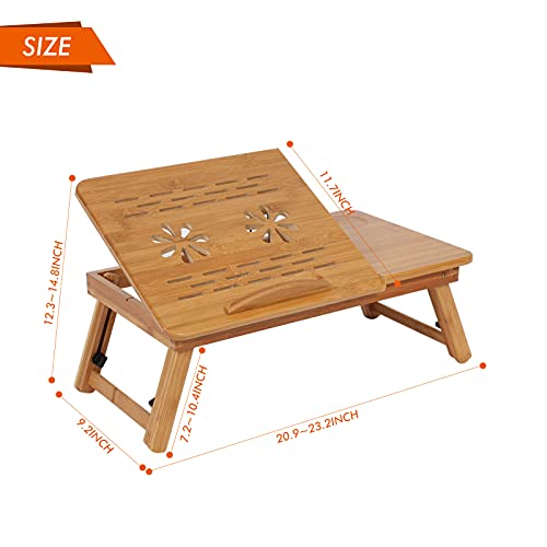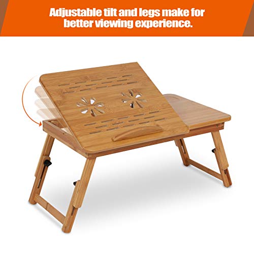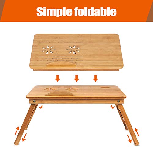 GOTOTOP - GOTOTOP Laptop Table,Bamboo Bed Tray Stand Folding Laptop Desks Adjustable Notebook Desk Reading Tray with Tilting Top Drawer Cooling Holes Anti-slip Baffle and Line Cord Slop for Bed Sofa, 50×30×20cm