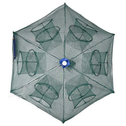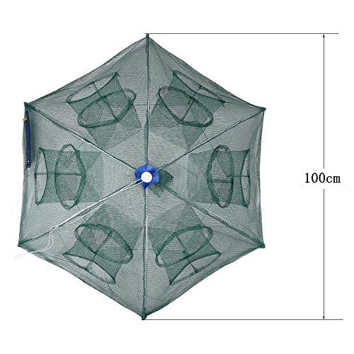 - Portable 6 sides 12 Holes automatic telescopic fishing shrimp trap, convenient and simple, no need to install, easy to use. Just pull the string on the top and the net will be automatically opened