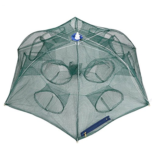 Goture - Goture Collapsible Folded Crab Trap Fishing Net Minnow Fish Crayfish Crawdad Shrimp Bait Trap with Rope 8 12 16 18 Holes