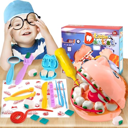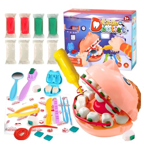 - مجموعة لعب أدوات طبيب إبداعية لحفر وحشو الأسنان: مجموعة ألعاب حفر وحشو العجين بما في ذلك رأس النموذج والمثاقب والملاقط وأداة طبيب الأسنان ومراية وأسطوانة تقويم الأسنان وفرشاة أسنان، و8 عبوات من الصلصال. تمنح الأطفال تجربة أكثر واقعية وممتعة. (يتم اختيار ألوان أدوات العجين بشكل عشوائي).