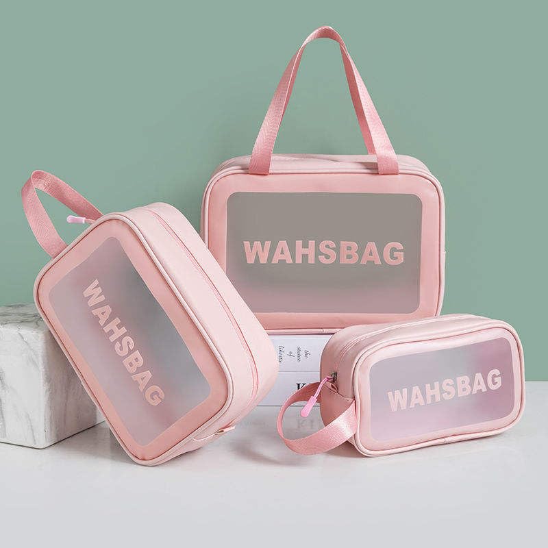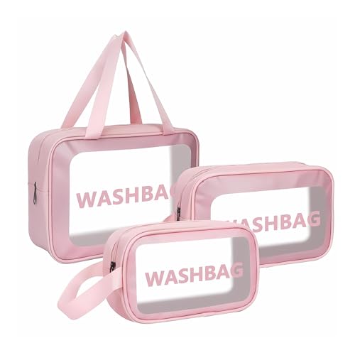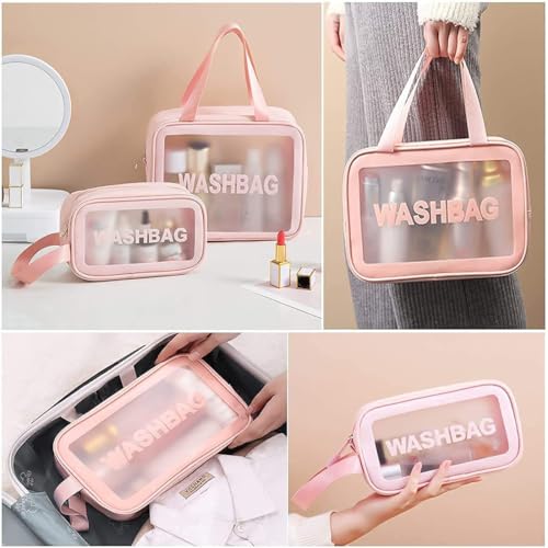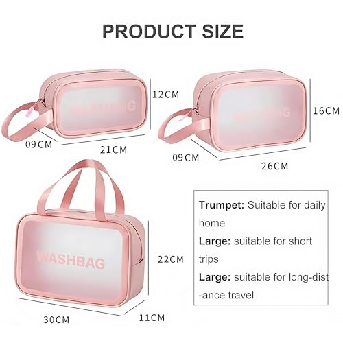 Gowloz - Clear Cosmetic Bag Stylish Cosmetic Organizer for Girls & Women - Perfect Travel Bag for Makeup, Toiletries, Ideal for Travel & Daily Use - Durable & Chic Pack of 3 (Pink)