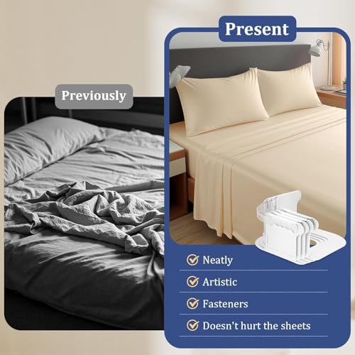 - تركيب سهل وسريع: مثبتات الملاءات الخاصة بنا سريعة وسهلة التركيب عن طريق تجميعها، لا حاجة لقلب المرتبة لتثبيتها، وبمجرد تثبيتها، يمكن تركها في مكانها لتثبيت الملاءات في مكانها ومنعها من التحرك.