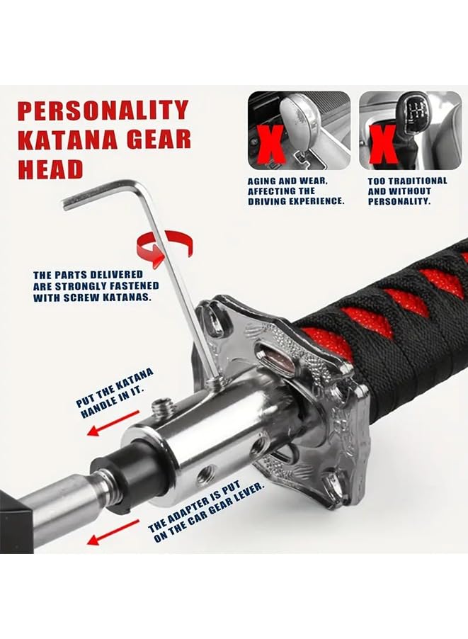 GQ - GQ Car Gear Lever Stick Knob,Samurai Sword Change Knob, 6-inch Short Gear Shift Knob With 4 Adapters, For Manual Transmission Cars And Most Automatic Transmission Cars (black/red)