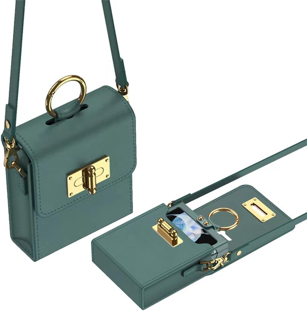 GQ - GQ Case for Samsung Z Flip 6/5/4/3/2/1 Pocket, Mini Backpack with Shoulder Strap in PU Leather for Samsung Galaxy Z Flip 6/5/4/3/2/1(Green)