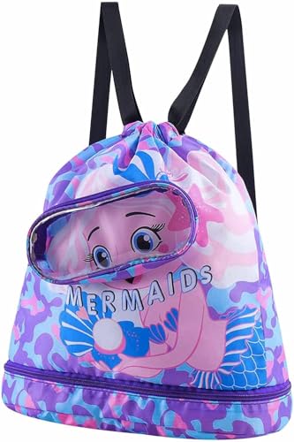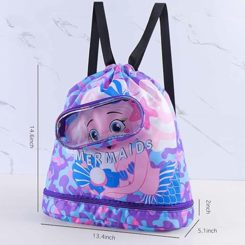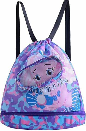 GQ - GQ Mermaid Waterproof Beach Gym Backpack Mermaid Drawstring Swim Bag for Women Men Draw String Bags for Swimmers Dance Yoga Camp Dry Wet Separated Swimming Bag With Shoe Compartment, M