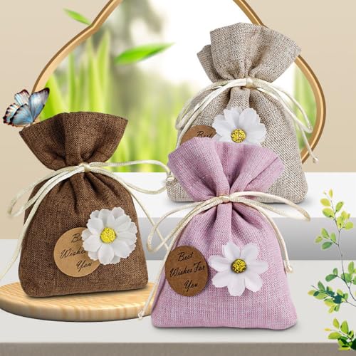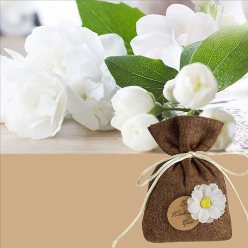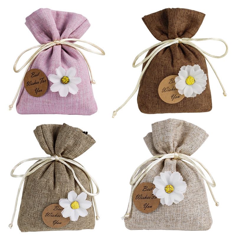 - ELEGANT DESIGN: Beautifully crafted linen sachet bags with decorative white daisy flowers and 'Best Wishes For You' message tag in four stylish colours