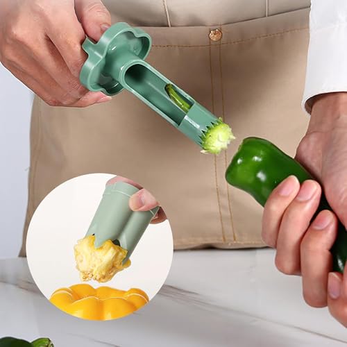 GQ - أداة إزالة بذور الفلفل، أداة تقطيع وتقشير الفلفل الحلو 2 في 1، أداة إزالة بذور الفاكهة والخضروات تصميم 2025، أداة مطبخ سهلة الاستخدام لإعداد وجبات سريعة وفعالة مع إزالة بذور الفاكهة والخضروات من جي