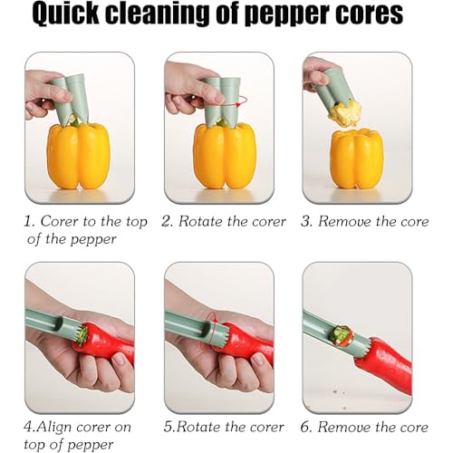 - 【عززي إبداعاتك في الطبخ】 سواء كنت تحضرين الفلفل المحشو أو الفاهيتا أو طبقًا ملونًا، فإن أداة إزالة بذور الفلفل الخاص بنا تضفي البهجة إلى إعداد خضروات، مما يحولها إلى قطعة مبهجة وأساسية لروتين الطبخ.