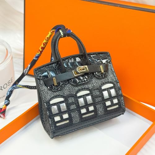 GQ - GQ Vegan Leather Mini Handbag Shape Keychains - Cute Preppy Purse Charms for Women, Durable Car & Handbag Accessories, Compact Bag Decor with Intricate Details (Black)