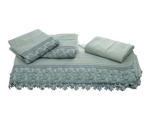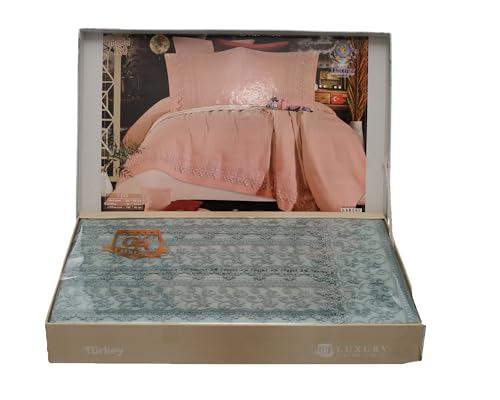 Egyptian Textile - GR Set Of 5 Pieces Sheet 240x260 + 2 Pillow Cases 50x70 + 2 Pillow 150x45 Joubir 100% Cotton Anti Pilling And Shrinkage Turquoise - 18137