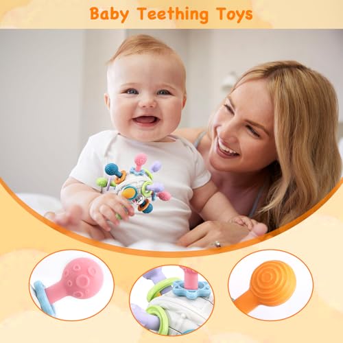 WixbFyn - Grabbing Ball Baby Toy,Sensory Teething Teether Toys,Silicone Teething Ring, Motor Skills, Montessori Early Educational, Rattle, Baby Toy for Babies 3-18 Months