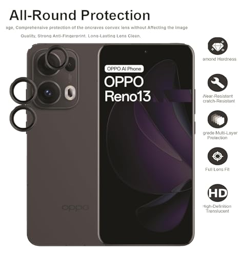 GRABIST - Grabist Camera Lens Protector for Oppo Reno 13 Pro, 9H Tempered Glass & Ultra-Thin Aluminum Alloy Lens Screen Protective, case friendly Cover for oppo reno 13 Pro 5G (black)