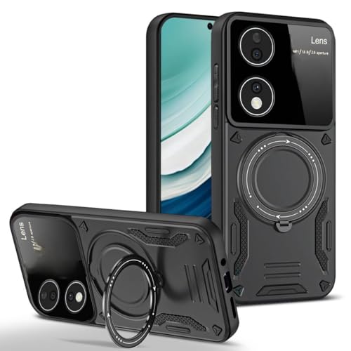 GRABIST - جراب جرابيست لموبايل هونر X7b مع واقي عدسة الكاميرا، شديد التحمل ومضاد للصدمات مسند حلقي متوافق الشحن اللاسلكي، لهاتف 4G (اسود)