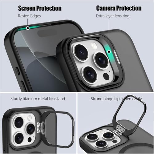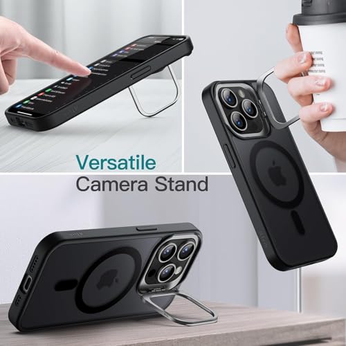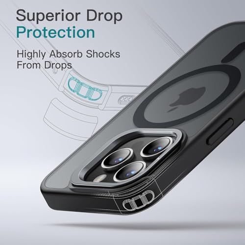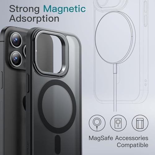 GRABIST - جراب لموبايل آيفون 15 برو ماكس، متوافق مع ماج سيف، حامل كاميرا مدمج، جراب مغناطيسي شفاف مطفي للحماية من السقوط من الدرجة العسكرية لموبايل آيفون 15 برو ماكس من جرابست لون أسود