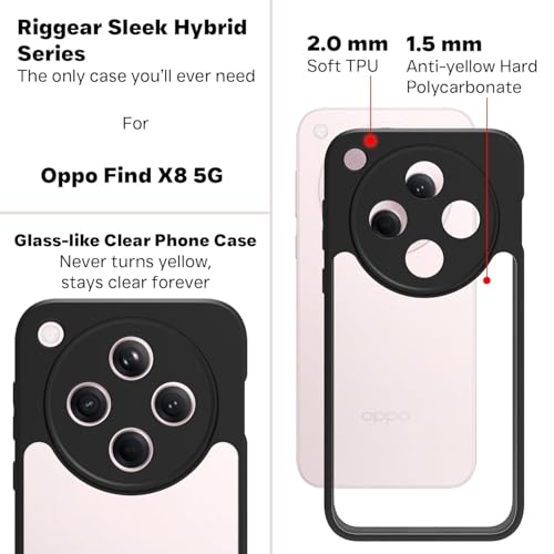 GRABIST - Grabist Case For Oppo Find X8, Crystal Clear Non-Yellowing, Military Grade Protection, Shockproof Protective Cover with Camera Protection for oppo Find x8 5G (Black Frame)